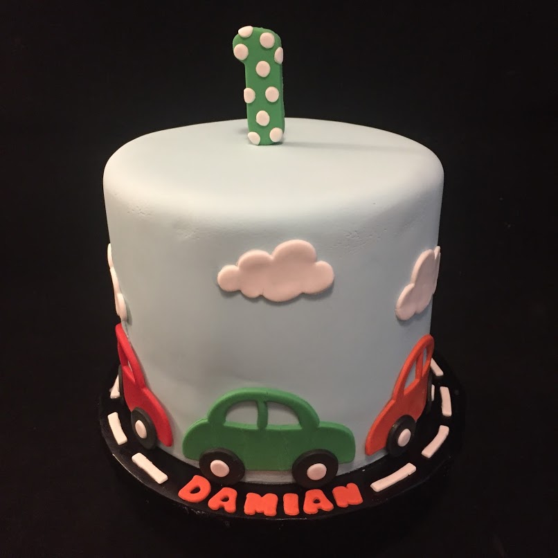 I love getting to do a sweet cake like this for a first birthday! For this 6" three layer vanilla cake it had salted caramel butter cream filling. Mr. T was on a roll delivering cakes this week.